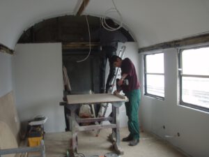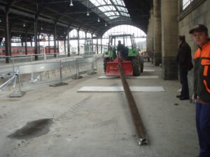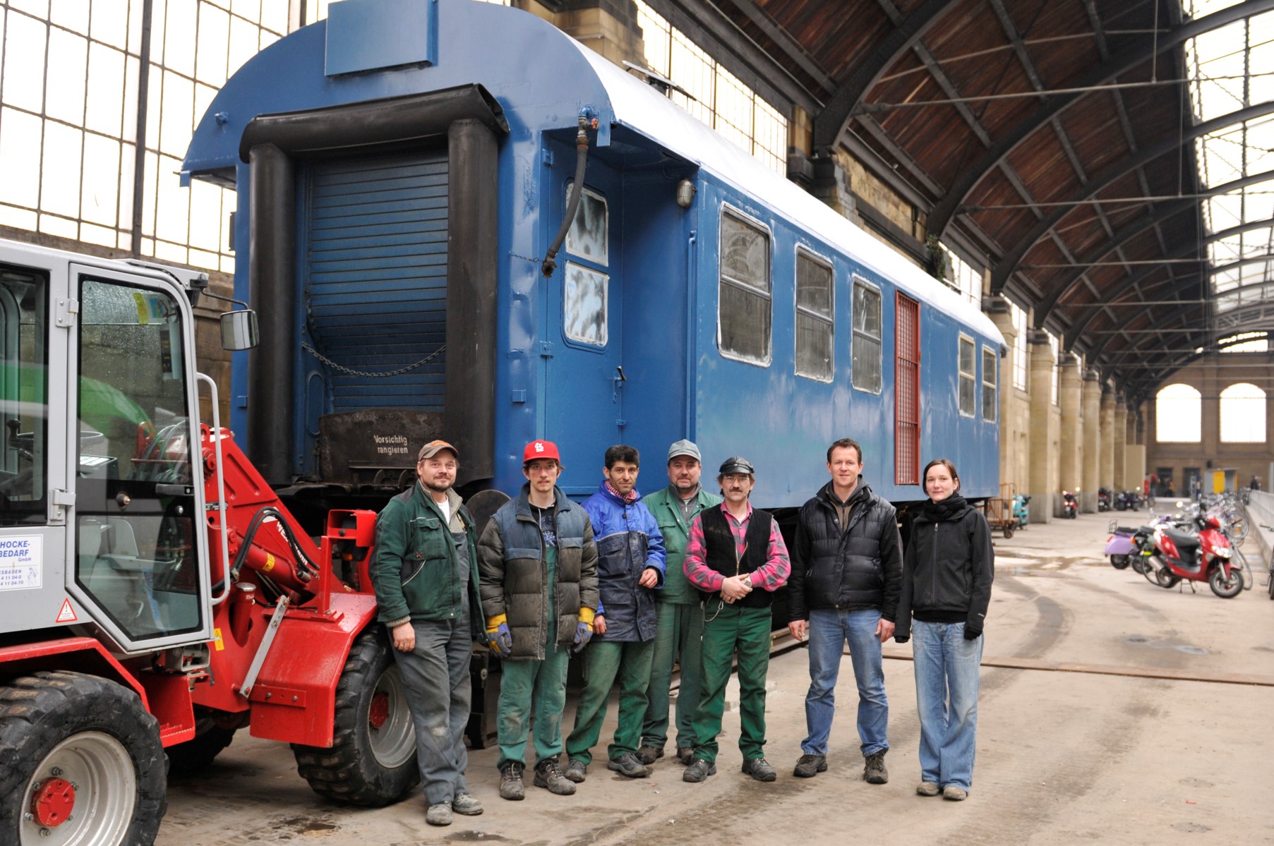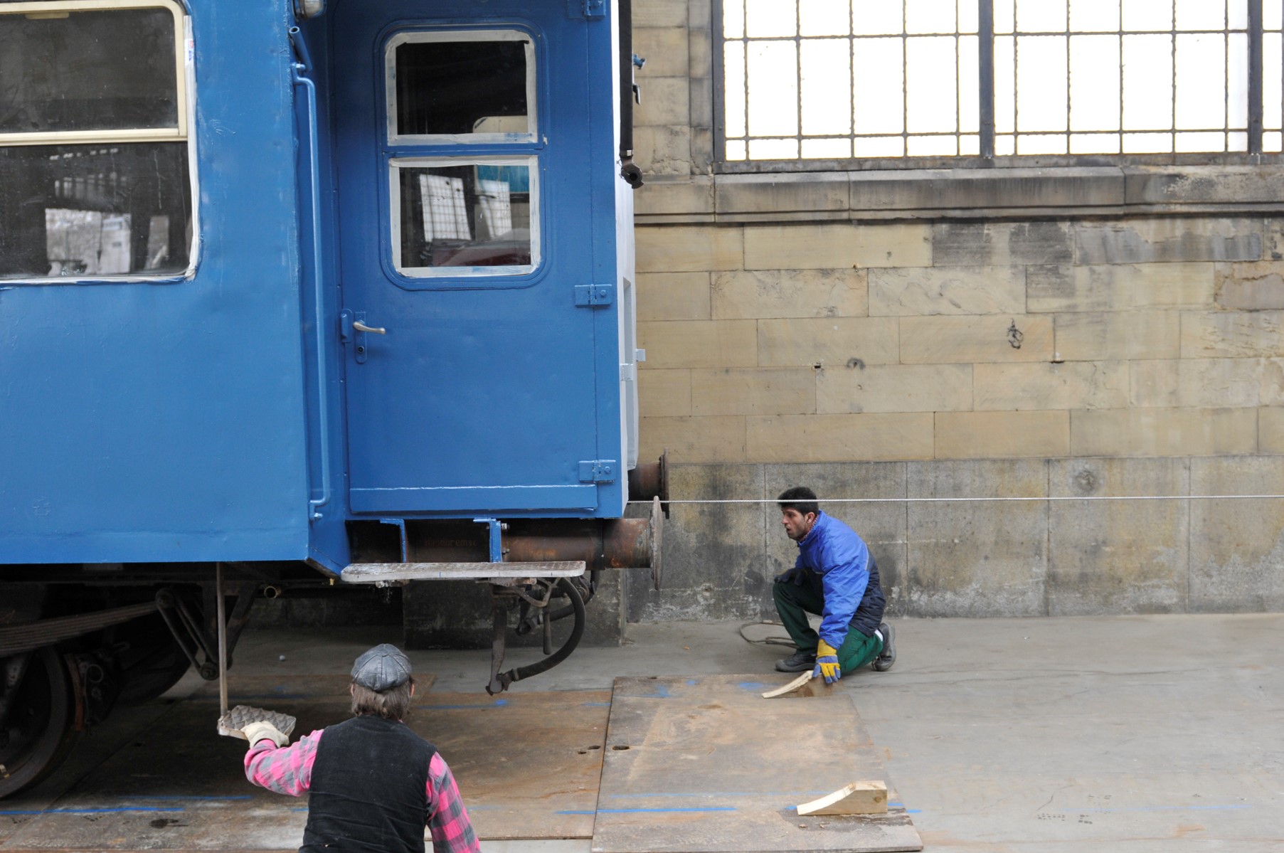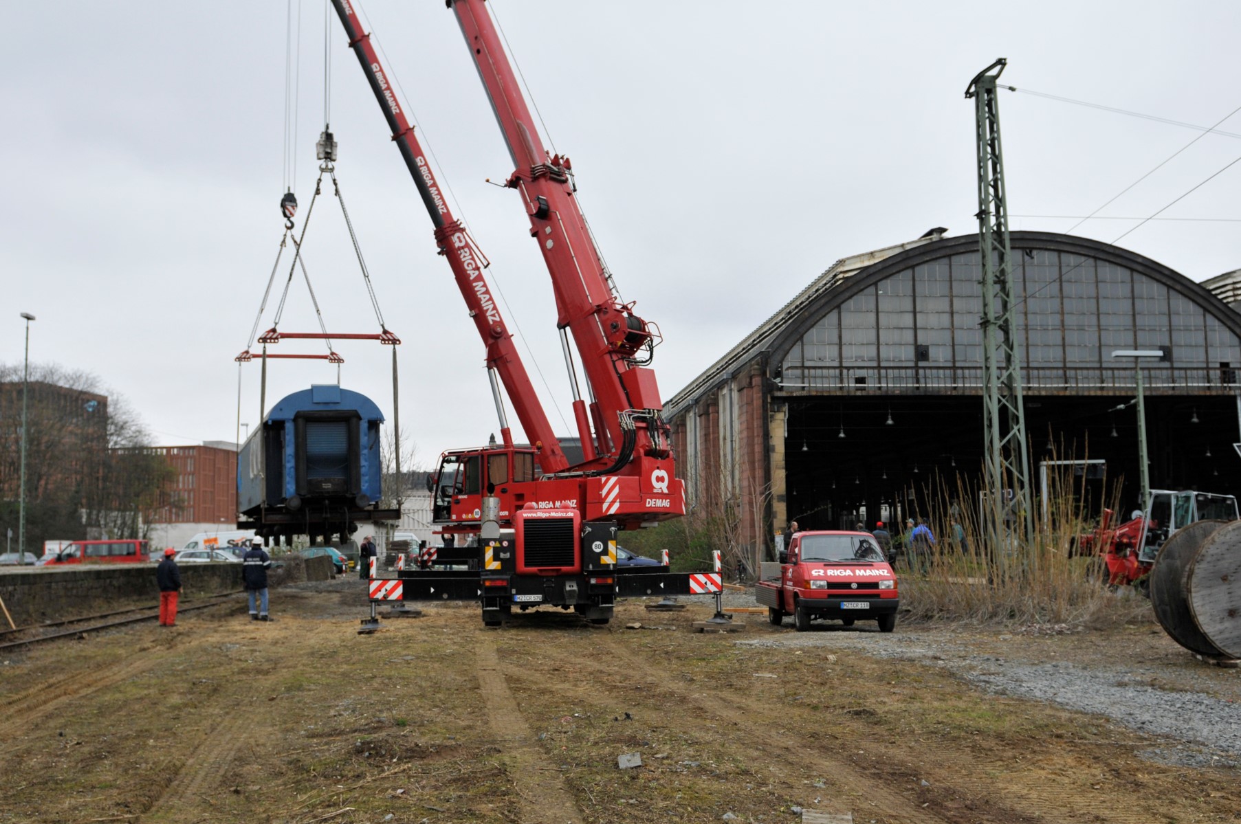 Der Waggon „schwebt“ an seine Wirkungsstätte.